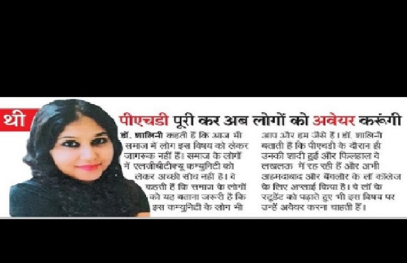 डॉ. शालिनी कहती हैं कि आज भी समाज में लोग इस विषय को लेकर जागरूक नहीं हैं। समाज के लोगों में एलजीबीटीक्यू कम्युनिटी को लेकर अच्छी सोच नहीं है। वे कहती हैं कि समाज के लोगों को यह बताना जरूरी है कि इस कम्युनिटी के लोग भी आप और हम जैसे हैं। डॉ. शालिनी बताती हैं कि पीएचडी के दौरान ही उनकी शादी हुई और फिलहाल वे लखलऊ में रह रही हैं और अभी अहमदाबाद और बैंगलौर के लॉ कॉलेज के लिए अप्लाई किया है। वे लॉ के स्टूडेंट को पढ़ाते हुए भी इस विषय पर उन्हें अवेयर करना चाहती हैं।