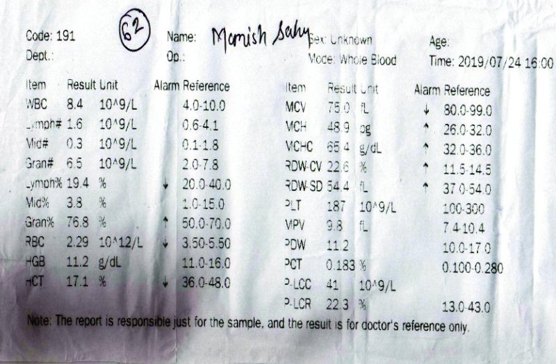 सप्ताहभर पहले दरभा ब्लॉक के कमलुपारा निवासी जगमोहन के १७ वर्षीय बेटे की तबियत अचानक बिगडऩे पर डिमरापाल मेडिकल कॉलेज में भर्ती किया। चेकअप के बाद डॉक्टर ने ब्लड जांच के लिए कहा। जांच के बाद बच्चे का एचबी ५-६ ग्राम आया। इसके बाद परिजनों ने जब निजी लैब में ब्लड जांच करवाया जो एचबी लगभग १० से ११ ग्राम के बीच आया। इसके अलावा अन्य जांच रिपोर्ट में भी काफी अंतर मिला।