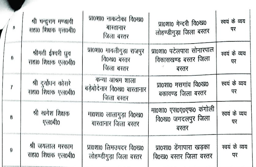 खगेश सोम बास्तानार ब्लॉक के लालागुड़ा माध्यमिक शाला से जगदलपुर ब्लॉक के माध्यमिक शाला कंगोली लाया गया है। लालगुड़ा के लिए स्कूल से खगेश सोम का ट्रांसफर किया गया है। वहां अब एक ही शिक्षक रह गया है। जिस पर एक दिन में १८ कक्षा लेने का अव्यवहारिक बोझ डाल दिया गया है। एक ओर डीईओ जिले की शिक्षा व्यवस्था सुधारने की बात कह रहे हैं तो वहीं दूसरी ओर उनके द्वारा ऐसे कई आदेश जारी किए गए हैं जिससे शिक्षण व्यवस्था पूरी तरह से चरमरा गई है। खगेश सोम के बारे में जब पत्रिका ने पड़ताल की तो पाया कि वे पहले बास्तानार में बीआरसी थे और पिछले साल ही लालगुड़ा में पोस्टिंग हुई थी। उनका परिवार लंबे समय से बस्तर में रह रहा है। खगेश डीईओ सोम के स्व. बड़े भाई सुपुत्र हैं। इस मामले में जब हमने डीईओ सोम का पक्ष लेना चाहा तो उनका फोन लगातार व्यस्त आता रहा और उन्होंने हमें कॉल बैक भी नहीं किया।