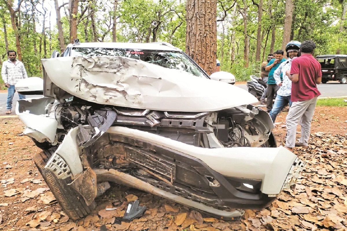 सड़क हादसे में पेड़ से टकराई कार (Photo-Patrika)