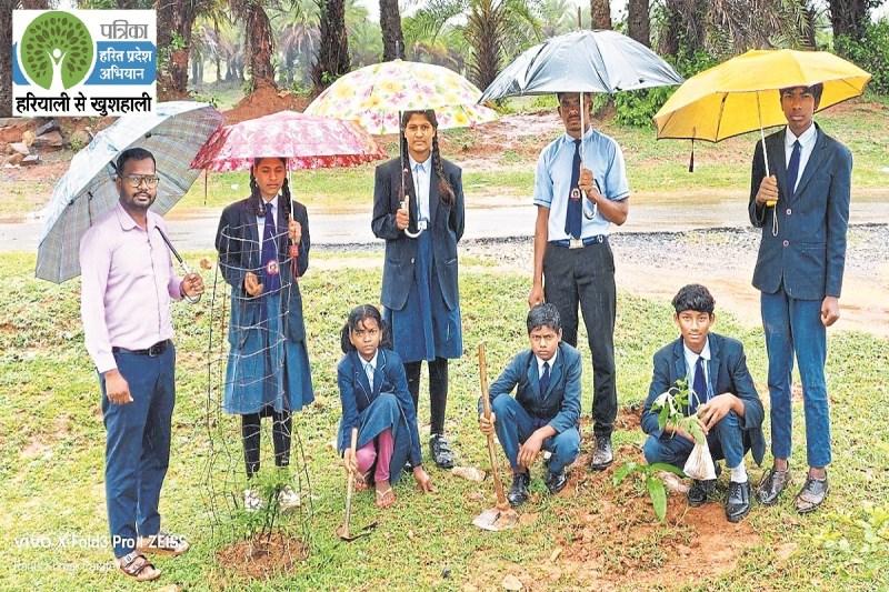 Patrika Harit Pradesh Abhiyan: बच्चों ने छाता लेकर बारिश के बीच पौधारोपण कर यह साबित किया कि जब भावना सच्ची हो, तो मौसम भी बाधा नहीं बनता। हर बच्चे के हाथ में पौधा था और दिल में अपनी माँ के लिए सम्मान। विद्यालय परिवार द्वारा इस प्रकार के रचनात्मक और भावनात्मक कार्यक्रमों से विद्यार्थियों में पर्यावरण के प्रति जागरूकता और अपने परिवार व संस्कृति के प्रति संवेदना जागृत की जा रही है। एक पेड़ माँ के नाम सिर्फ एक कार्यक्रम नहीं, एक विचार है जो आने वाली पीढिय़ों को संवेदना, सम्मान और स्वच्छ पर्यावरण की राह दिखाता है।