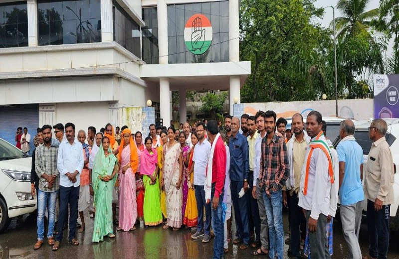 शनिवार को कांग्रेस भवन के सामने नारायणपुर सीट से श्याम कुमारी धु्रव के लिए नारेबाजी करते समर्थक