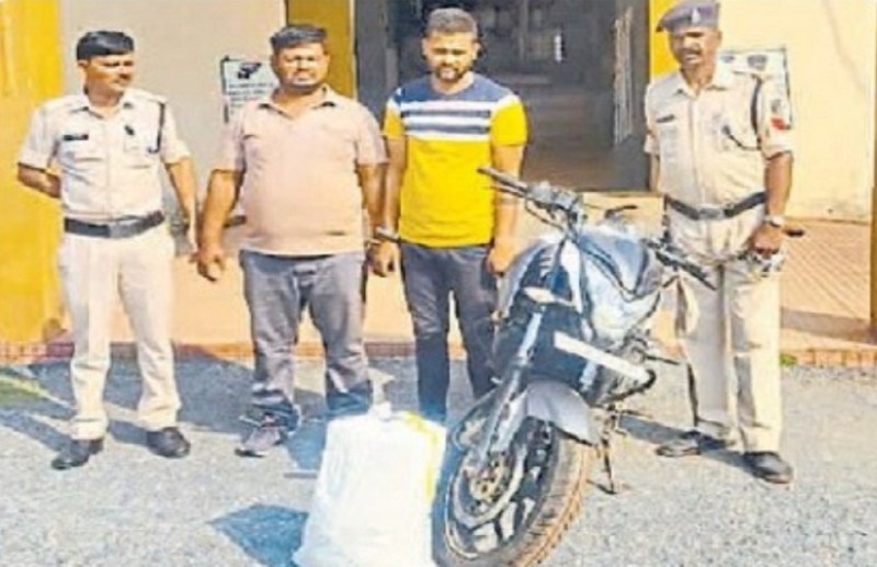 CG Jagdalpur News : आज शहर के एनएच 30 स्थित आमागुड़ा चौंक में मोटरसायकिल से रायपुर जा रहे दो गांजा तस्करों को कोतवाली पुलिस ने दो लाख दस हजार के गांजा के साथ गिरफतार करने में सफलता पायी है। (CG jagdalpur News) उक्त दोनों तस्कर मोटरसायकिल से एक बोरी में 21 किलो गांजा रखकर रायपुर की ओर जा रहे थे।