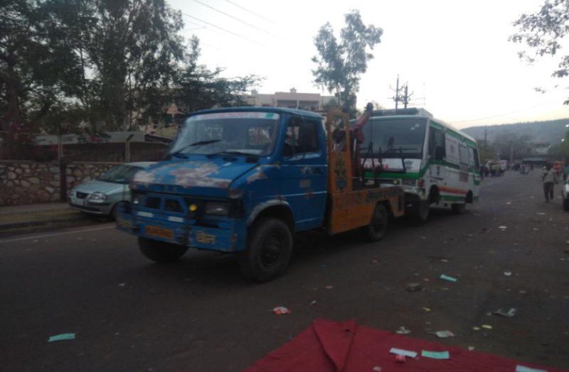 108 एंबुलेंस कर्मियों और सेवा प्रदाता के बीच मांगों को लेकर चल रहा विवाद आज चौथे दिन भी जारी है। स्थिति ऐसी है कि घायलों की जान बचाने के लिए उनको अस्पताल ले जाने वाली 108 एंबुलेंस खुद ही बेस कार्यालय में खड़ी हैं और इन्हें क्रेन के जरिए दूसरी जगह ले जाया जा रहा है, क्योंकि इन एंबुलेंसों के टायरों की हवा निकाल दी गई। वहीं नेशनल हैल्थ मिशन के मिशन निदेशक का कहना है कि आज फिर हड़ताली एंबुलेंस कर्मियों को दोपहर बाद वार्ता के लिए बुलाया है।