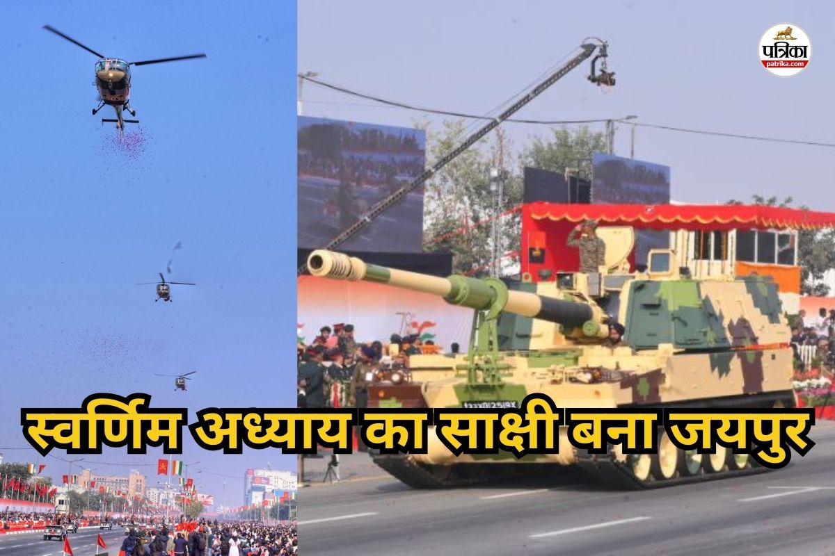 टैंक, अत्याधुनिक तोपें, मिसाइल सिस्टम, एयर डिफेंस सिस्टम, रॉकेट लॉन्चर, ड्रोन और रोबोटिक सिस्टम के जरिए दुनिया को भारतीय सेना की ताकत का संदेश दिया। सेना के लड़ाकू हेलिकॉप्टर ने परेड के दौरान पुष्पवर्षा की। वहीं, भारतीय वायुसेना के जगुआर फाइटर जेट्स ने हवाई पास्ट कर आसमान में शक्ति और शौर्य का प्रदर्शन किया।