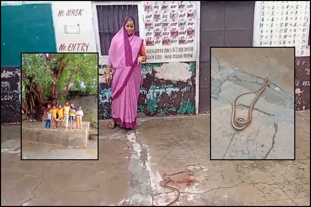 बाल-बाल बचे 16 बच्चे बच्चे और आंगनबाड़ी सहायिका, गांव वालों ने सांप को मार डाला , फोटो - पत्रिका