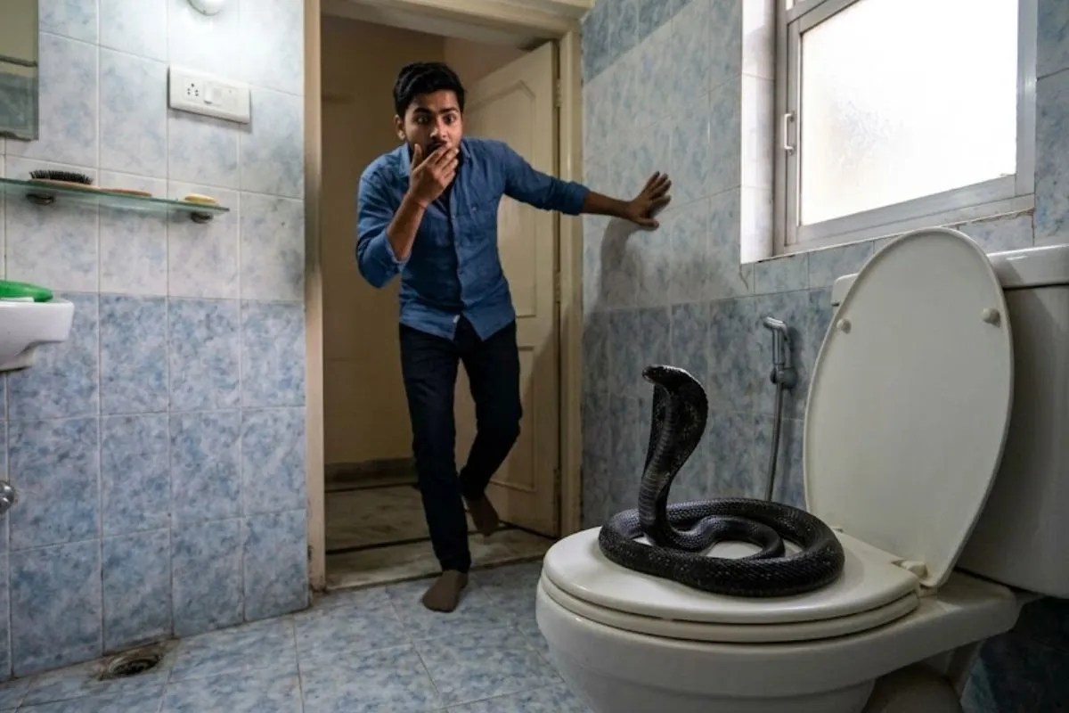 मामला जैसलमेर का है। जहां जुगत सिंह के घर में शनिवार रात परिवार का एक सदस्य बाथरूम करने के लिए अंदर गया था। जैसे ही उसने बाथरूम की लाइट जलाई, उसकी नजर कमोड की सीट पर पड़ी। वहां एक काला कोबरा सांप कुंडली मारकर बैठा था। अचानक सांप को इतने करीब देख युवक बुरी तरह घबरा गया और चिल्लाते हुए बाहर की ओर भागा। परिजनों ने हिम्मत दिखाते हुए तुरंत बाथरूम का दरवाजा बाहर से बंद कर दिया, ताकि सांप घर के दूसरे हिस्सों में न जा सके। इसके बाद स्नेक कैचर साहिल खान को इसकी सूचना दी गई।