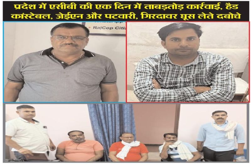 एसीबी : प्रदेश में एक दिन में ताबड़तोड़ कार्रवाई, हैड कांस्टेबल, जेईएन और पटवारी-गिरदावर घूस लेते दबोचे
