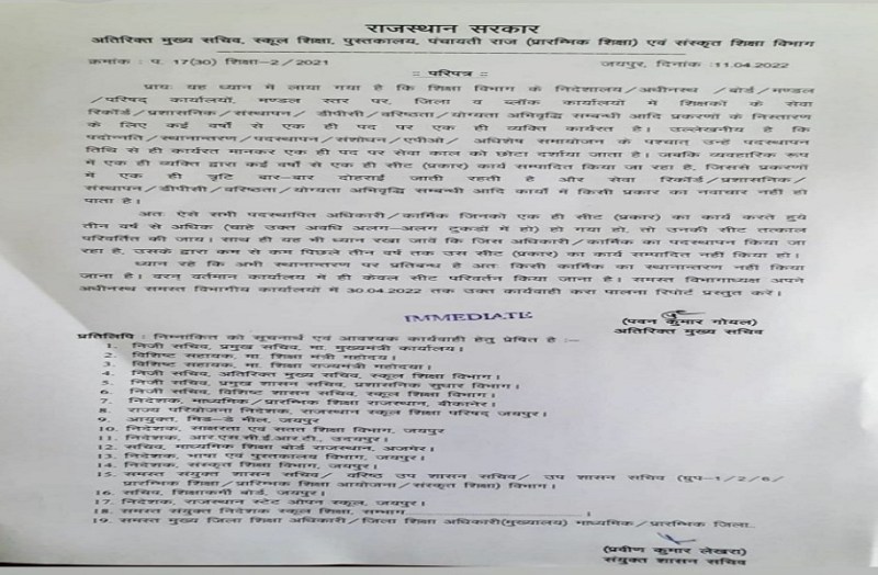 Education department- एक पद पर तीन साल से टिक कार्मिकों की बदलेगी कुर्सी