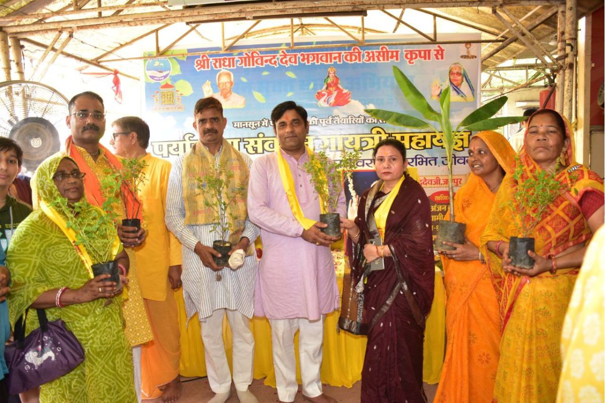 जयपुर। प्रदेश में प्री-मानसून की दस्तक के बाद रविवार को पर्यावरण संरक्षण और हरियाली बढ़ाने की दिशा में एक विशेष कार्यक्रम का आयोजन किया गया। रविवार को गोविंद देवजी मंदिर परिसर में पर्यावरण, वन एवं जलवायु परिवर्तन संवर्धन परिषद की ओर से पर्यावरण संवर्धन गायत्री महायज्ञ रखा गया, जिसका मुख्य संदेश हरियाली, शांति और जनजागृति था।