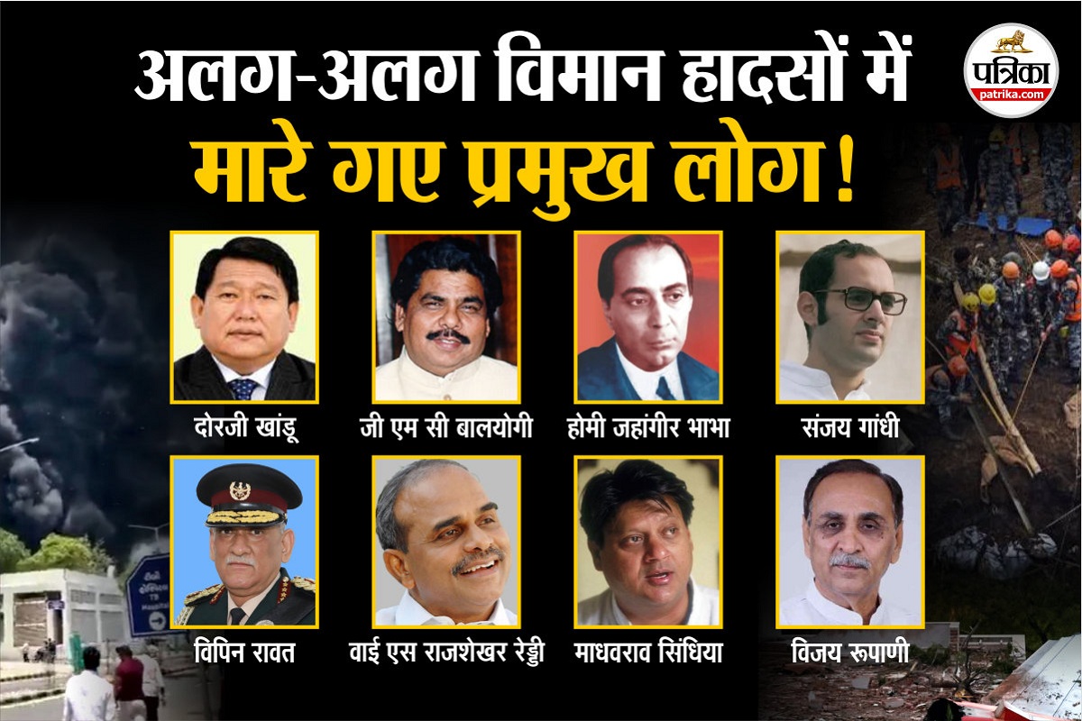 जयपुर. अहमदाबाद के सरदार वल्लभभाई पटेल हवाई अड्डे से लंदन के गैटविक के लिए उड़ान भरने वाली एयर इंडिया की फ्लाइट एआई-171 (बोइंग 787-8) टेकऑफ के दो मिनट बाद मेघानीनगर के पास दुर्घटनाग्रस्त हो गई। इस हादसे में 241 लोग मारे गए, जिनमें गुजरात के पूर्व मुख्यमंत्री विजय रूपाणी भी शामिल थे। केवल एक यात्री, विश्वस कुमार रमेश, जीवित बचा। इस त्रासदी ने भारत के विमानन सुरक्षा मानकों पर फिर सवाल खड़े कर दिए हैं, जो संजय गांधी से जनरल बिपिन रावत तक के हादसों की कड़ी में एक और अध्याय जोड़ता है। यह पहला मौका नहीं है जब भारत ने किसी बड़े नेता को विमान या हेलिकॉप्टर हादसे में खोया हो। अतीत में कई हादसों ने देश को झकझोर दिया है।