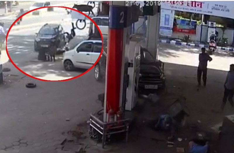 एक मिनट 43 सेकेंड के वीडियो में काले रंग की एक कार तेज रफ्तार में आ रही है। अचानक ड्राइवर कार पर से सतुंलन खो बैठता है और एक बाइक सवार को टक्कर मारते हुए कार सीधी पेट्रोल पंप की मशीन घुसी। कार की चपेट में आकर पेट्रोल मशीन और बाइक क्षतिग्रस्त हो गई। हादसे के बाद लोगों की भीड़ जमा हो जाती है।