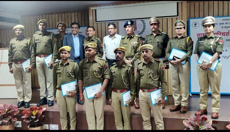 पुलिस महानिदेशक एम एल लाठर ने कहा है कि बदलते तकनीकी परिवेश में पुलिस कर्मियों के तकनीकी कौशल को बढ़ाने के निरन्तर प्रयासों के साथ ही आमजन को भी साइबर अपराधों के बारे में अधिक से अधिक जागरूक करने की आवश्यकता है। लाठर पुलिस मुख्यालय में राजस्थान पुलिस तथा सरदार पटेल पुलिस,सुरक्षा और दाण्डिक न्याय विश्वविद्यालय के संयुक्त तत्वावधान में आवास फाउंडेशन के सौजन्य से आयोजित साइबर वारियर्स सम्मान समारोह को संबोधित कर रहे थे। लाठर एवं विश्विद्यालय के कुलपति डॉ आलोक त्रिपाठी ने इस अवसर पर 10 साइबर वारियर्स (पुलिस उप अधीक्षक संजय आर्य पुलिस निरीक्षक सज्जन कंवर, पुलिस निरीक्षक पूनम चौधरी, कॉस्टेबल रोशन कुमार,हेड कॉस्टेबल टोंक राजेश चौधरी, कॉस्टेबल अलवर तनवीर कुमार, कॉस्टेबल बीकानेर दिलीप सिंह, कॉस्टेबल चालक अभिमन्यु कुमार सिंह, कॉस्टेबल उदयपुर कुलदीप सिंह एवं कॉस्टेबल एसओजी महेंद्र कुमार) को पुरस्कार एवं प्रशस्ति पत्र प्रदान कर सम्मानित किया।