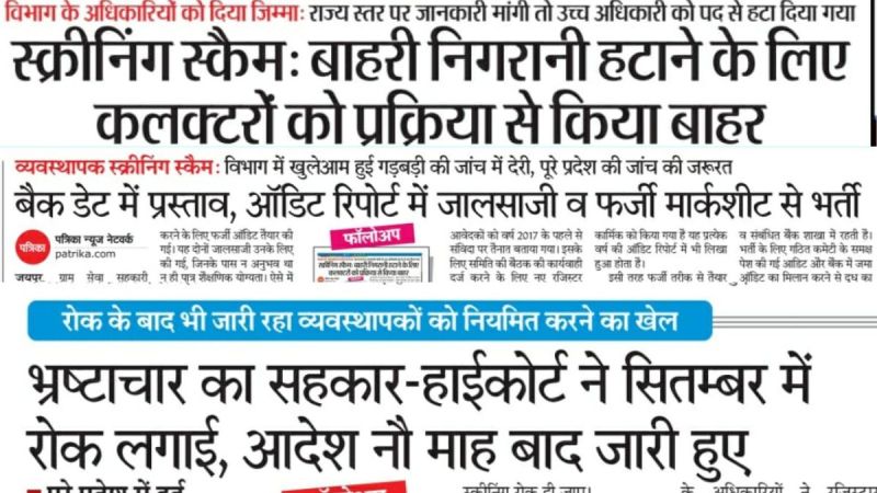 हाईकोर्ट के आदेश बाद भी स्क्रीनिंग जारी क्यों रही:- राजस्थान हाईकोर्ट ने 30 सितम्बर 2022 को स्टे आदेश दिया। इसके बाद भी न जिला स्तर पर, न ही विभाग स्तर पर कोई आदेश जारी किए गए। करीब नौ माह बाद जुलाई 2023 के पहले सप्ताह में रजिस्ट्रार कार्यालय की ओर से निर्देश दिए गए कि हाईकोर्ट की ओर से जारी आदेश सभी जिलों के लिए प्रभावी रहेगा। तब तक अधिकतर जिलों में स्क्रीनिंग हो चुकी थी।