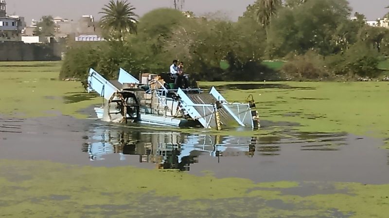 कुम्हारिया तालाब में पिछले कई समय से अपने पांव पसार चुकी अजोला वनस्पति को साफ करने के लिए आखिर नगरनिगम को डिविडिंग मशीन उतारनी ही पड़ी।
