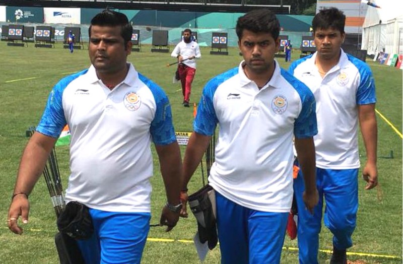 भारतीय तिकड़ी चौथे सेट के बाद कोरिया से एक अंक से आगे चल रही थी। लेकिन उनके जश्न को उस समय झटका लग गया जब रिव्यू में कोरियाई टीम के एक खिलाड़ी के 9 के स्कोर को 10 आंका गया, इससे दोनों टीमें एक समान स्कोर पर आ गयीं। स्वर्ण के लिये कराये गये शूटऑफ में कोरिया ने एक इनर 10 (बुल्स आई के सबसे निकट), और एक 10 एवं 9 का शॉट लगाया और विजेता बन गयी जबकि भारतीय टीम ने दो 10 और एक 9 का शॉट लगाया और उसे रोमांचक मुकाबले में हारकर महिला टीम की ही तरह रजत से संतोष करना पड़ गया।