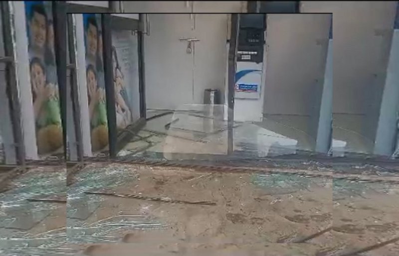 ATM booth glass broken in bull fighting in sagar