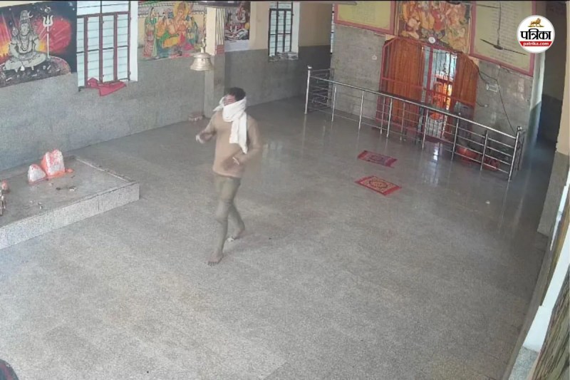 जानकारी के अनुसार दोपहर के समय दो बदमाश मंदिर परिसर में घुसे और टिनशेड के नीचे रखी बेंच पर बैठ गए। एक बदमाश बाहर निगरानी करता रहा जबकि दूसरे ने मुंह पर कपड़ा बांधा और मंदिर में प्रवेश किया।