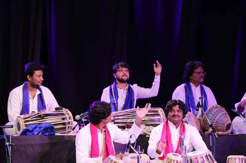 जयपुर। जेकेके के रंगयान में शनिवार शाम को 21 भारतीय शास्त्रीय कलाकारों ने 'ताल वाद्य कचेहरी ' की प्रस्तुति दी। इस प्रस्तुति को तबला कलाकार मुजफ्फर रहमान और उस्ताद जफर मोहम्मद ने निर्देशित किया। कलाकारों ने तबला, खरताल, पखवाज, ढोलक, सारंगी, सितार, हारमोनियम और नगाड़ा जैसे वाद्ययंत्रों पर प्रस्तुति देकर दर्शकों को मंत्रमुग्ध कर दिया। कलाकार मुजफ्फर रहमान और उस्ताद जफर मोहम्मद के अलावा प्रस्तुति देने वाले कलाकारों में रमजान हुसैन, ऐश्वर्य आर्य, अमीरुद्दीन खान, हरि हर शरण भट्ट, रमेश मीना मेवाल सहित अन्य कलाकार शामिल थे।