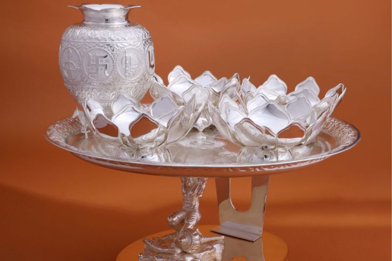 अयोध्या में राममंदिर ट्रस्ट के अध्यक्ष चंपतराय और राम मंदिर के पुजारी गुरु गोविंद देव गिरी को हाल ही 7.5 किलो चांदी से बना यह थाल जयपुर निवासी लक्ष्य पाबूवाल ने भेंट किया। इसके बाद चंपतराय ने थाल में ही प्रभु राम को पहला भोग लगाने को कहा।
