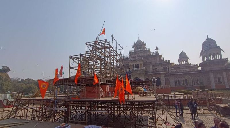 श्री धर्म फाउंडेशन ट्रस्ट, नगर निगम ग्रेटर जयपुर एवं जयपुर व्यापार महासंघ की ओर सेे रामनिवास बाग स्थित अल्बर्ट हॉल पर प्रभु श्रीराम लला दीपोत्सव पर्व कार्यक्रम का आयोजन किया जा रहा है। ट्रस्ट के अध्यक्ष सुधीर जैन गोधा ने बताया कि कार्यक्रम के लिए अल्बर्ट हाल परिसर में बंगाल से आए 150 कारीगर 35 फीट ऊंचे राम मंदिर का निर्माण कर रहे है। 22 जनवरी को विशेष आकर्षण ड्रोन शो होगा। ट्रस्ट के महासचिव गब्बर कटारा ने बताया कि कार्यक्रम के दौरान राजस्थानी गीतों की प्रस्तुति होगी। रामनिवास बाग में कन्नौज के विशेष इत्र का छिड़काव किया जाएगा। जयपुर व्यापार महासंघ के उपाध्यक्ष सचिन गुप्ता ने बताया कि जो लोग अयोध्या नहीं जा सकेंगे। वे लोग 18 फीट ऊंची राम की प्रतिमा के दर्शन यहां कर सकेंगे। इससे पहले अल्बर्ट हॉल परिसर पर बन रहे राम मंदिर का भूमि पूजन हुआ।