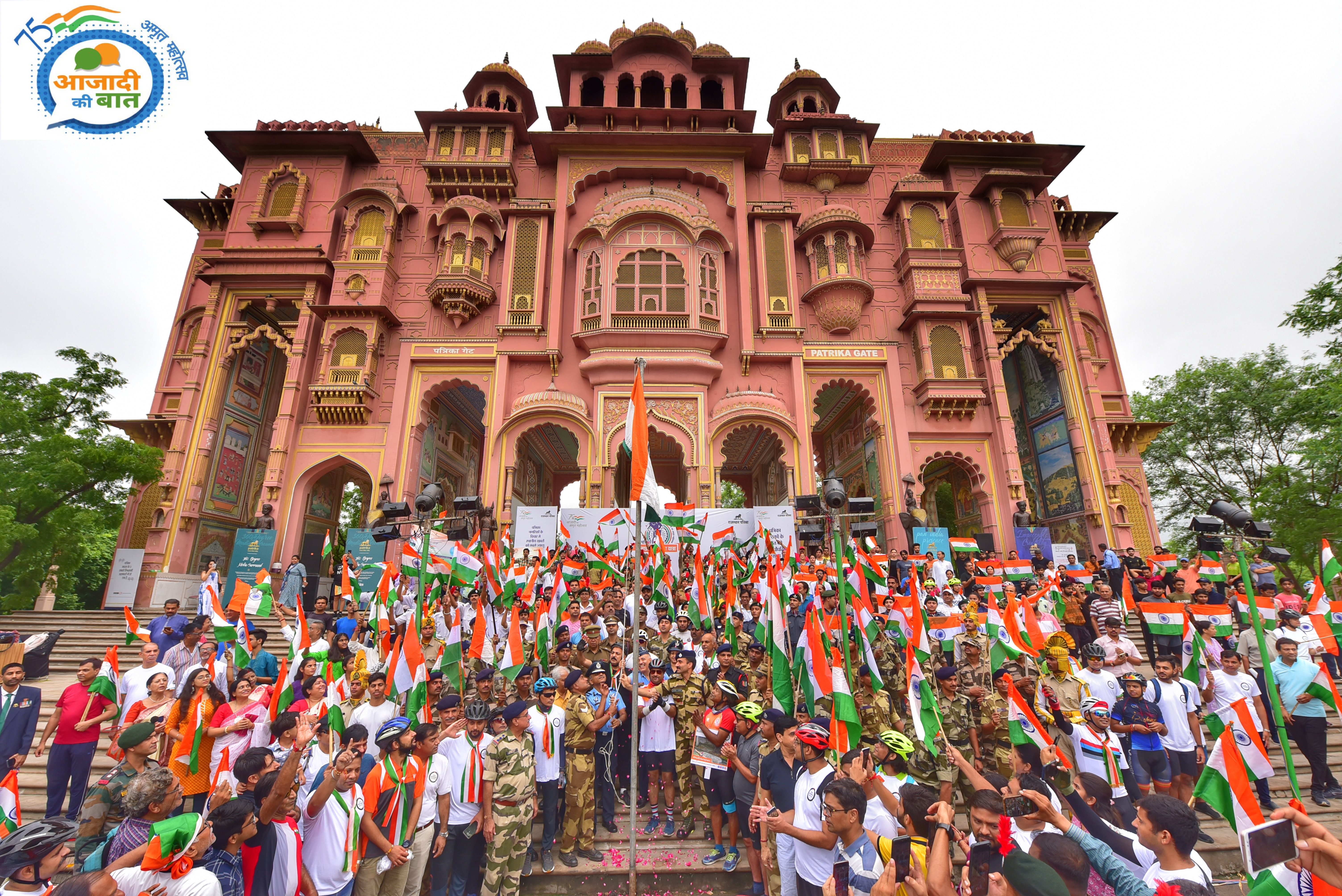 जयपुर.आजादी के 75 वें अमृत महोत्सव के तहत देशभर में देशभक्ति के प्रति आमजन का उत्साह देखते ही बन रहा है। इस कड़ी में शनिवार को राजस्थान पत्रिका आह्वान पर जयपुर हार्ट इंस्टीट्यूट और राजस्थान रोड राइडर्स की अगुवाई में जवाहर सर्किल स्थित पत्रिका गेट से जेएलएनम मार्ग तक साइकिल रैली निकाली गई। इससे पूर्व हुए विभिन्न कार्यक्रमों में शहरवासियों ने हिस्सा लिया।