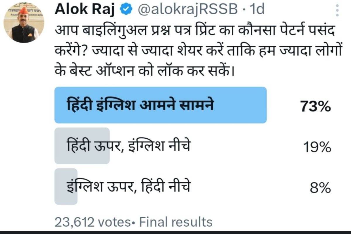स्पष्ट था कि अधिकांश परीक्षार्थियों (73%) ने यह चाहा कि प्रश्नपत्र में हिंदी और अंग्रेजी एक साथ आमने-सामने हों, जिससे प्रश्नों को समझने में आसानी हो और परीक्षा का समय बचाया जा सके। इस सर्वे के परिणामों को ध्यान में रखते हुए बोर्ड ने तुरंत यह बदलाव लागू करने का निर्णय लिया।