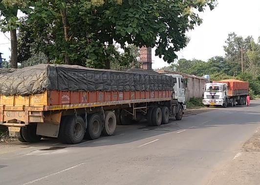 Heavy vehicles made the road parking