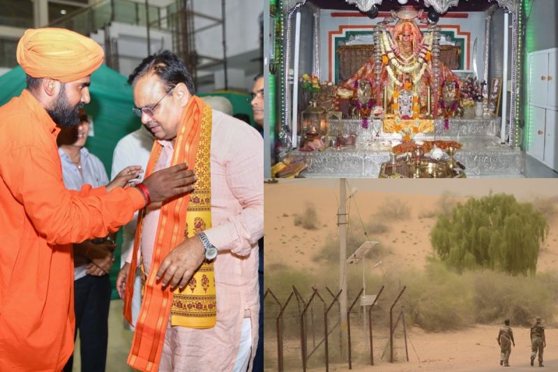 जयपुर। मुख्यमंत्री भजनलाल शर्मा आज जैसलमेर दौरे पर है। सीएम आज सुबह तनोट माता के मंदिर में पहुंचे। यहां पर जिला प्रमुख प्रताप सिंह व अन्य ने उनका स्वागत किया। सीएम ने मंदिर में पूजा अर्चना की। इसके बाद सीएम को माता की तस्वीर भेंट की गई। फिर सीएम बॉर्डर के लिए रवाना हुए। जहां पर सीएम सीमा प्रहरियों से मुलाकात व संवाद करेंगे।
