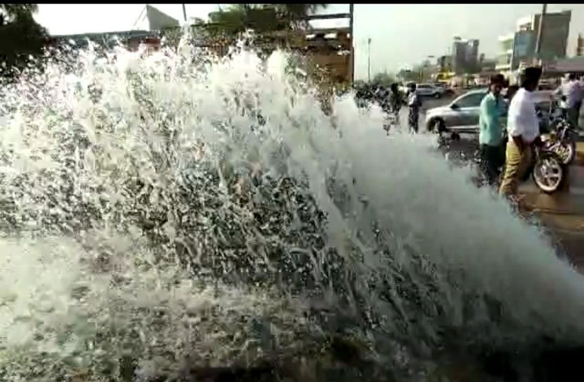 700 एमएम की लाइन के टूटने से तेज प्रेशर के साथ पानी बहने लगा। इससे सड़क पर गढ्डा हो गया। करीब आधे घंटे तक पानी बहता रहा। इससे हजारों लीटर पानी सड़क पर बह निकला। जलदाय विभाग के अधिशाषी अभियंता अमित सुलेरा ने बताया कि एक कंपनी ने बिना सूचना दिए ही यहां फाइबल ऑप्टिकल केबिल डालने का काम शुरू कर रखा है, ड्रिल मशीन से लाइन टूट गई। मौके पर पहुंच कर पानी सप्लाई को बंद करके मरम्मत का काम शुरू कर दिया।