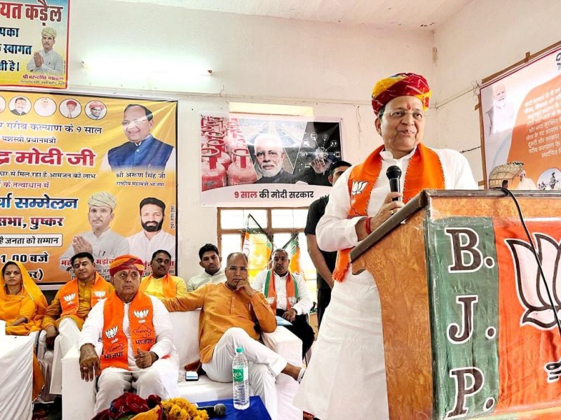 उन्होंने कहा कि कांग्रेस की गहलोत सरकार ने साढ़े चार साल में राजस्थान को केवल जंगलराज, अपराधीकरण और भ्रष्टाचार प्रशासन देने का काम किया। प्रदेश की भ्रष्ट और कुशासन की मिसाल बन चुकी सरकार किसानों के कर्जा माफ करने में झांसा देकर सत्ता में आई। प्रदेश के लिए बड़े दुर्भाग्य की स्थिति है कि आज राजस्थान के किसान की जमीन नीलाम होने की स्थिति आ चुकी है, लेकिन गहलोत सरकार किसान कर्ज माफी के नाम पर किसानों के साथ धोखा कर रही है। सिंह ने मोदी सरकार के 9 वर्ष की उपलब्धियों का जिक्र किया और कहा कि पीएम मोदी ने जो कहा वह करके दिखाया।