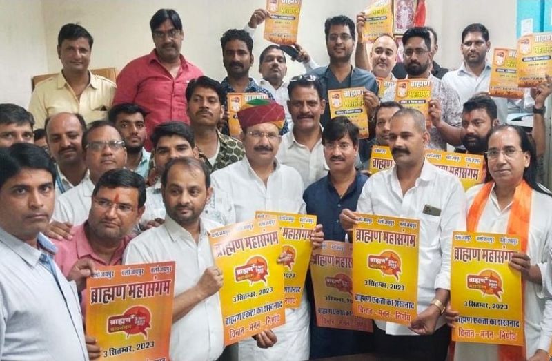 जयपुर। चुनावी साल में जयपुर में एक बार फिर ब्राह्मण जुटेंगे। 3 सितम्बर को अल्बर्ट हॉल पर ब्राह्मण महासंगम का आयोजन होगा, जिसमें देश—दुनिया के समाज के लोग शामिल होंगे। महासंगम में 51 प्रमुख संत—महंत हिस्सा ले रहे है, वहीं 10 देशों के सांसद व प्रबुद्धजन शामिल हो रहे है। कार्यक्रम में केन्द्रीय मंत्री नितिन गड़करी व पूर्व मंत्री व उत्तराखंड के पूर्व सीएम रमेश पोखरियाल भी शामिल होंगे। वहीं फिल्म निर्माता भी शामिल हो रहे है।