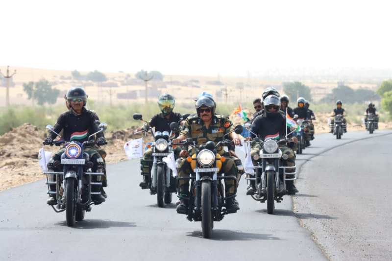 75वीं वर्षगांठ के मौके पर‘आजादी के अमृत महोत्सव’’ के तहत फ्रंटियर मुख्यालय, सीमा सुरक्षा बल, राजस्थान द्वारा लगभग 850 मिलोमीटर लम्बी एक मोटरसाईकिल रैली फ्रंटियर मुख्यालय सीमा सुरक्षा बल, जोधपुर से पोकरण और जैसलमेर होते हुए सीमावर्ती विश्व विख्यात तनोट माता मन्दिर से होते हुए सीमा चौकी बवलियान तक निकाली गई।
