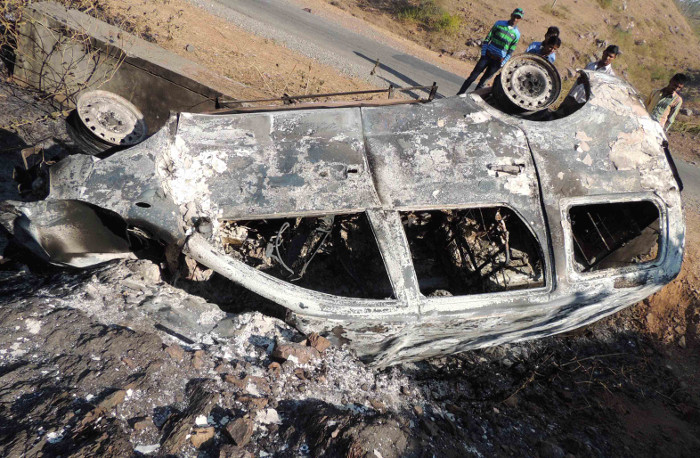 तलैया-चुण्डावाड़ा मार्ग पर मोदर घाटी पर चलती कार में अचानक आग लग गई। देखते ही देखते आग ने पूरी कार को चपेट में ले लिया। सूत्रों ने बताया कि चालक मोदर निवासी कल्पेश कलाल ने सूझबूझ दिखाई और तत्काल फाटक खोल बाहर कूद पड़ा। कार पुलिया से टकरा कर पलट गई। सूचना पर मंगलवार सुबह एएसआई अर्जुनसिंह मौके पर पहुंचे। हादसे में किसी के हताहत होने की सूचना नहीं है, लेकिन कार पूरी तरह से जल गई।