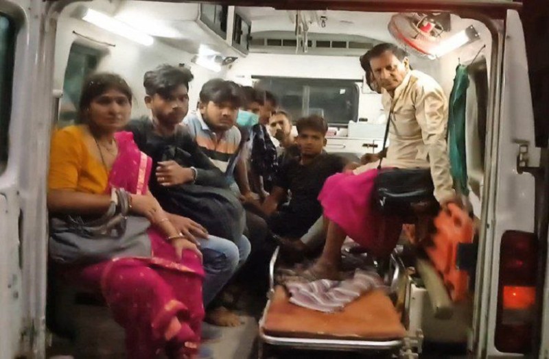 हादसे के बाद घायलों को अस्पताल ले जाते हुए।
