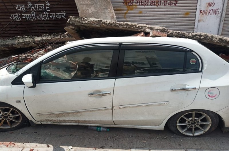 छज्जा गिरने से कार और बाइक क्षतिग्रस्त