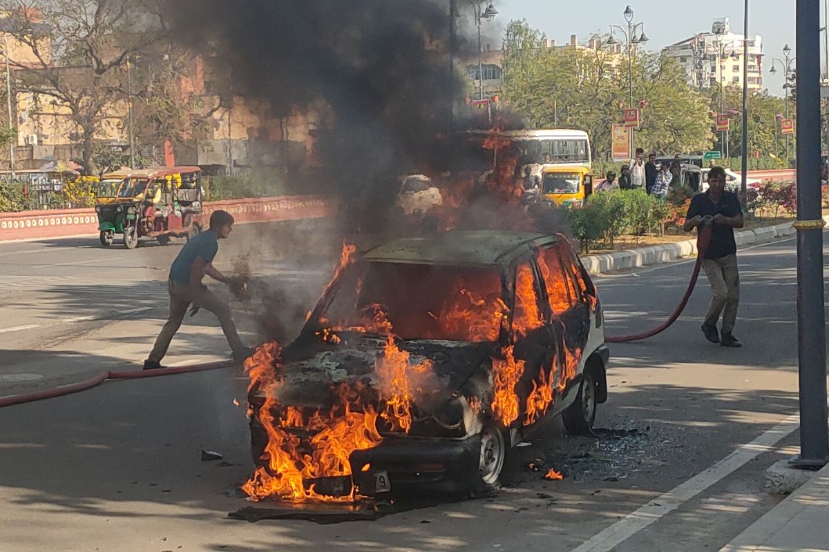 सूचना मिलते ही दमकल विभाग की टीम मौके पर पहुंची और कड़ी मशक्कत के बाद आग पर काबू पाया गया। राहत की बात यह रही कि इस हादसे में कोई जनहानि नहीं हुई। प्रत्यक्षदर्शियों के अनुसार कार में पहले धुआं उठा और फिर कुछ ही पलों में उसमें आग लग गई।