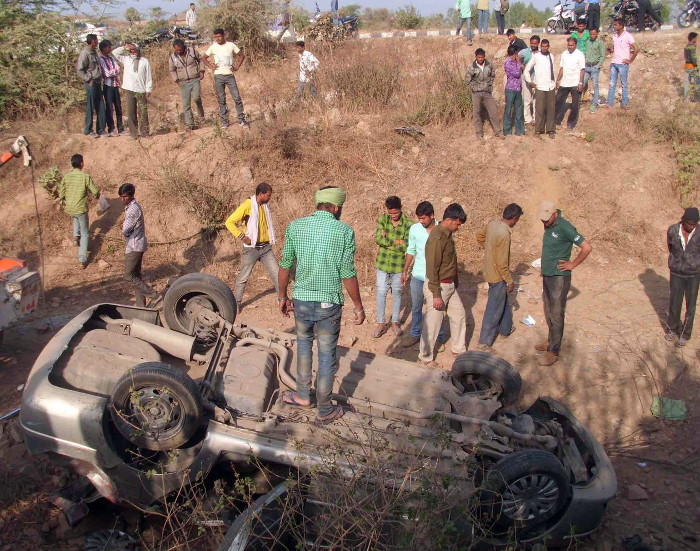 पुलिस के अनुसार राजावाड़ी पश्चिम मुंबई निवासी नरेश (60) पुत्र जीवनदास वैद्य सहित चार जने नोएडा से मुंबई जा रहे थे। उदयपुर में रात्रि विश्राम के बाद वे रविवार सुबह मुंबई के लिए रवाना हुए। आरा मोड़ पर कार अनियंत्रित खाई में पलट गई। हादसे में नरेश की मौके पर ही मृत्यु हो गई। राजकोट निवासी परेश पुत्र प्रभु चावड़ा, कार चालक पार्थ पुत्र किरीट कक्कड़ व दीपक पुत्र भरतभाई नंदानी घायल हो गए।