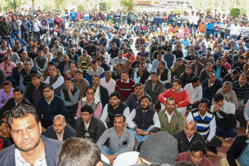 कर्मचारियों ने नरसी मीणा को ड्यूटी के दौरान प्रताड़ित करने और छुट्टी न देने को लेकर उप मुख्य कार्मिक अधिकारी हेमंत सुलानिया के खिलाफ आक्रोश व्यक्त किया।
