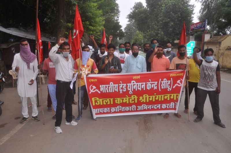 इस कड़ी में जयपुर में श्रम आयुक्त कार्यालय पर श्रमिकों ने कोविड-19 गाइडलाइन का पालन करते हुए विरोध प्रदर्शन किया। इस अवसर पर श्रमिक नेता मुकेश माथुर, कुणाल रावत, जीवन गुर्जर, रविंद्र शुक्ला, रामपाल सैनी, आर के सिंह, डी के छंगानी, भंवर सिंह, घासीराम शर्मा, बी एम सुंडा सहित कई श्रमिक नेताओं ने संबोधित किया।