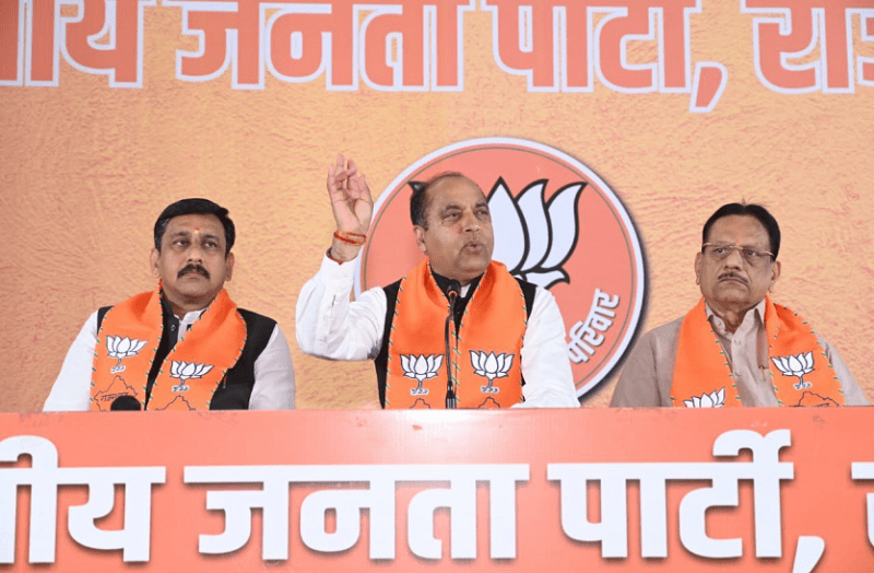 हिमाचल प्रदेश के पूर्व मुख्यमंत्री और हिमाचल के नेता प्रतिपक्ष जयराम ठाकुर ने कहा कि कांग्रेस की सभी गारंटियां पूरी तरह झूठ हैं। आज से करीब 11 महीने पहले हिमाचल प्रदेश में विधानसभा चुनाव हुए थे, जिसमें कांग्रेस ने राजस्थान की तरह ही गारंटियां दी थी। राजस्थान के मुख्यमंत्री अशोक गहलोत ने शिमला में प्रेसवार्ता करके कहा कि कांग्रेस के नेता राहुल गांधी जो वादा करते हैं। उसे पूरा करते हैं। कांग्रेस ने राजस्थान में 10 दिन में किसानों का संपूर्ण कर्ज माफ करने का वादा भी किया था। उसका क्या हुआ ? बिल्कुल इसी तरह हिमाचल के लोगों को झूठी गारंटियों में गुमराह किया गया। राजस्थान की जनता को समझने की जरूरत है कि वह इस तरह के झूठे प्रलोभन में ना आए।