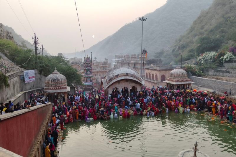 गलता तीर्थ में पीठाधीश्वर स्वामी अवधेशाचार्य के सान्निध्य में मेले का आयोजन हुआ। लोगों ने उगते सूर्य को अर्घ्य अर्पित किया। सूरज उगने से पहले ही श्रद्धालु गलता कुंड पर पहुंच गए। सूरज उगने के इंतजार के बीच छठ मैया और सूरज भगवान के गीत गाए। सूरज उगते ही दूसरा अर्घ्य अर्पित किया। इससे पहले समाजबंधु रातभर गलता तीर्थ में जुटे रहे। यहां रात को जागरण व भक्ति संगीत का आयोजन हुआ। इसी प्रकार शास्त्री नगर के किशनबाग और दुर्गा विस्तार कॉलोनी में भी रात्रि जागरण हुआ, यहां गंगा माता, काली माता और हनुमानजी की विशेष झांकी सजाई गई। यहां बनाए गए कृत्रिम जलाशय में श्रद्धालुओं ने खड़े होकर उगते सूरज को अर्घ्य अर्पित किया।