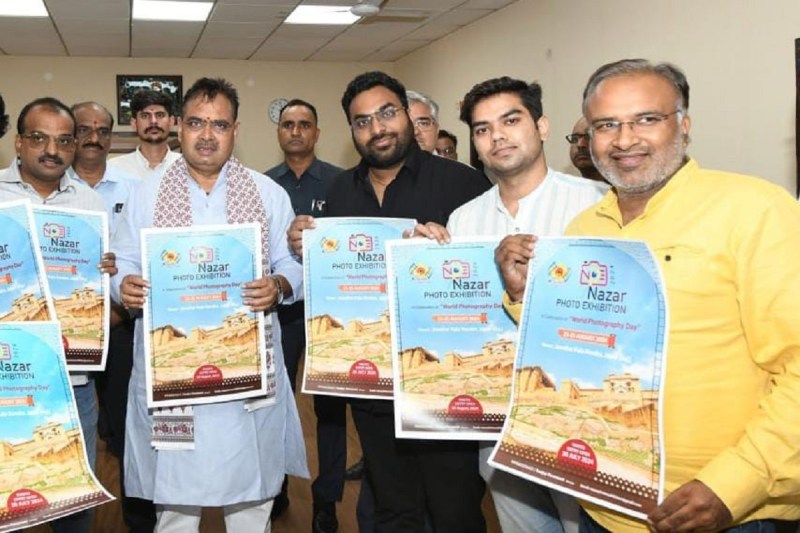 जयपुर। राजस्थान मुख्यमंत्री भजनलाल शर्मा ने राजस्थान फोटो फेस्टिवल के तहत विश्व फोटोग्राफी दिवस के अवसर पर होने वाली 'नजर फोटो एग्जिबिशन' के पोस्टर का विमोचन किया। इस मौके पर विधायक शत्रुघ्न गोतम भी मौजूद रहे। पोस्टर का विमोचन करते हुए मुख्यमंत्री ने आयोजकों को शुभकामनाएं दी। एग्जिबिशन के आयोजक फोटो जर्नलिस्ट संजय कुमावत ने मुख्यमंत्री को बताया कि यह एक अनोखी प्रदर्शनी है, और राजस्थान सबसे बड़ी एग्जिबिशन है। जिसमें 12 वर्ष के किशोर से लेकर 85 वर्ष के व्यक्ति भी हिस्सा ले रहे हैं।