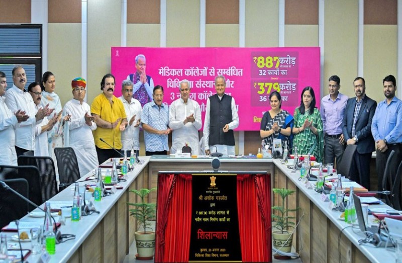 इससे पहले मुख्यमंत्री गहलोत ने 887 करोड रुपए की लागत से चिकित्सा संस्थानों के 32 कार्यों और तीन नर्सिंग कॉलेज के भवनों का शिलान्यास किया। साथ ही 379 करोड़ रुपए के 36 कार्यों का लोकार्पण भी किया। उन्होंने 7.15 करोड़ रुपए की लागत की 6 मोबाइल कैंसर निदान वैनों को भी हरी झंडी दिखाई। इस मौके पर यूडीएच मंत्री शांति धारीवाल, केबिनेट मंत्री लाल चंद कटारिया, गोविंद राम मेघवाल सहित चिकित्सा विभाग के प्रमुख अधिकारी मौजूद रहे।