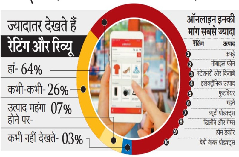 भारत में 72 प्रतिशत लोग ऑनलाइन शॉपिंग को मनोरंजक मानते हैं। डिजिटल खरीदारों में 44 फीसदी उत्पाद को स्टोर पर देखने के बाद ऑनलाइन लेना पसंद करते हैं। कई बार इसकी बड़ी वजह वस्तु के मूल्य पर मिल रहा डिस्काउंट होता है। लोग ऑनलाइन सामान लेते समय रिव्यू और रेटिंग पर भी ध्यान देते हैं। खासतौर से अगर उत्पाद महंगा हो।