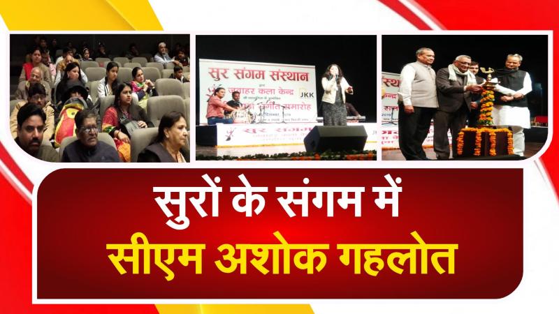जवाहर कला केंद्र ( jawahar kala kendra ) में शुक्रवार को सुर संगम ( sur sangam ) संस्थान की ओर से तीन दिवसीय 32वां राष्ट्रीय युवा संगीत समारोह ( sangeet samaroh ) की शुरु हुआ। समारोह की शुरुआत राजस्थान के मुख्यमंत्री अशोक गहलोत ( Ashok Gehlot ) ने दीप प्रज्ज्वलित कर की। इसके बाद उन्होंने दर्शक दीर्घा में बैठकर युवा गायक कलाकारों को सुना। तालियां बजाकर उनका हौंसला बढ़ाया। सभागार के बाहर बातचीत में मुख्यमंत्री ने कहा कि युवा कलाकारों को मंच देने का प्रयास सराहनीय है। खासकर छोटे कलाकारों की प्रस्तुति गजब की थी। उन्हें लगातार प्रोत्साहन मिलना चाहिए।