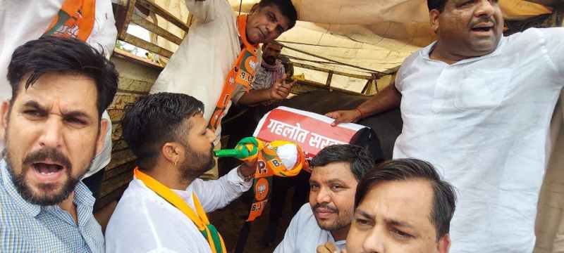 राजस्थान सरकार की जन विरोधी नीतियों के खिलाफ भाजपा ओबीसी मोर्चा ने सोमवार को हल्ला बोला। भाजपा मुख्यालय से सिविल लाइंस तक मोर्चा कार्यकर्ताओं ने सरकार के खिलाफ जमकर नारेबाजी की। इस दौरान 'भैंस के आगे बीन बजाकर' गहलोत सरकार की जनविरोधी नीतियों का विरोध किया गया। जयपुर के अलावा सभी जिलों में भी मोर्चा कार्यकर्ता सरकार के खिलाफ सड़कों पर उतरे।
