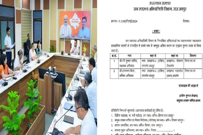 Jaipur News : विधानसभा क्षेत्र सांगानेर में कार्य में लापरवाही करना दो अधिकारियों को भारी पड़ गया। सीएम ने विकास कार्यों को लेकर रिव्यू मीटिंग ली। जिसमें अधिकारियों की लापरवाही सामने आई। इसके बाद अधिकारियों का जैसलमेर—बाड़मेर तबादला कर दिया गया है। सांगानेर के विकास कार्यो को लेकर मुख्यमंत्री भजनलाल शर्मा ने कल देर शाम की रिव्यू बैठक में पीएचईडी विभाग के अधिकारियों पर जताई नाराजगी का आज असर देखने को मिला। विभाग ने सांगानेर सब डिविजन में तैनात सहायक अभियंता रवि कुमार जांगिड़ और कनिष्ठ अभियंता ज्ञानचंद बैरवा का ट्रांसफर जैसलमेर, बाड़मेर कर दिया है।