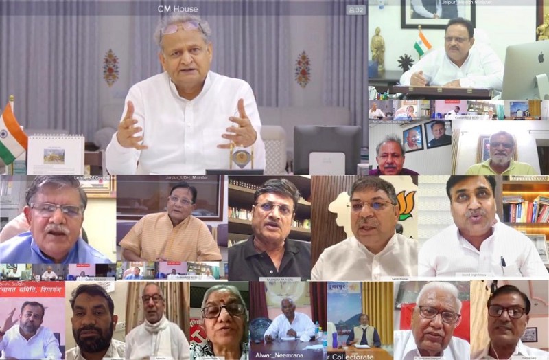 अभी राजनीति करने का समय नहीं है, सीएम ने कहा कि ग्रामीण इलाकों में ज्यादा जागरूकता चलाने की जरूरत है और सभी नेताओं गांवों में कोरोना की रोकथाम हो सके इसके लिए अपने सुझाव दें। मुख्यमंत्री ने भाजपा नेताओं से अपील की कि वे केंद्र से राज्य के लिए ऑक्सीजन और दवाइयों की मांग करें दवाइयों का वितरण संक्रमित मरीजों के अनुपात में किया जाए। मुख्यमंत्री गहलोत ने कहा की तीसरी लहर के लिए हम सभी को तैयार रहने की जरूरत है सभी जनप्रतिनिधियों को मिलकर कोरोना से जंग लड़नी है।