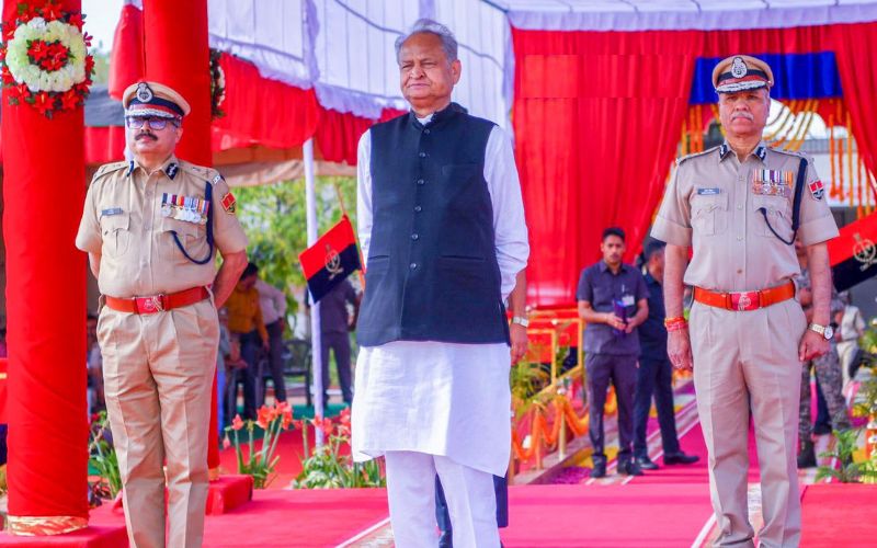 CM Gehlot In Yogi Style : राजस्थान पुलिस स्थापना दिवस पर मुख्यमंत्री अशोक गहलोत ने रविवार को पुलिस की कार्यशैली की तारीफ की। मुख्यमंत्री ने फिल्मी अंदाजा में कहा कि पुलिस ने झुकेगा नहीं की तर्ज पर काम किया, जिससे अपराध पर नियंत्रण हुआ है। सख्ती को लेकर उन्होंने कहा कि यहां कुछ घटनाएं हुई हैं और अपराधियों को सबक सिखा दिया गया। आगे भी सबक सिखा दिया जाएगा। राजस्थान में पुलिस का इकबाल बुलंद रहे। प्रदेश में अपराध पर लगाम लगे। गैंगस्टर बनने ही नहीं दिया जाए। कोई गलत रास्ते पर जा रहा है तो उसे समय रहते रोकने का काम पुलिस व प्रशासन का है।